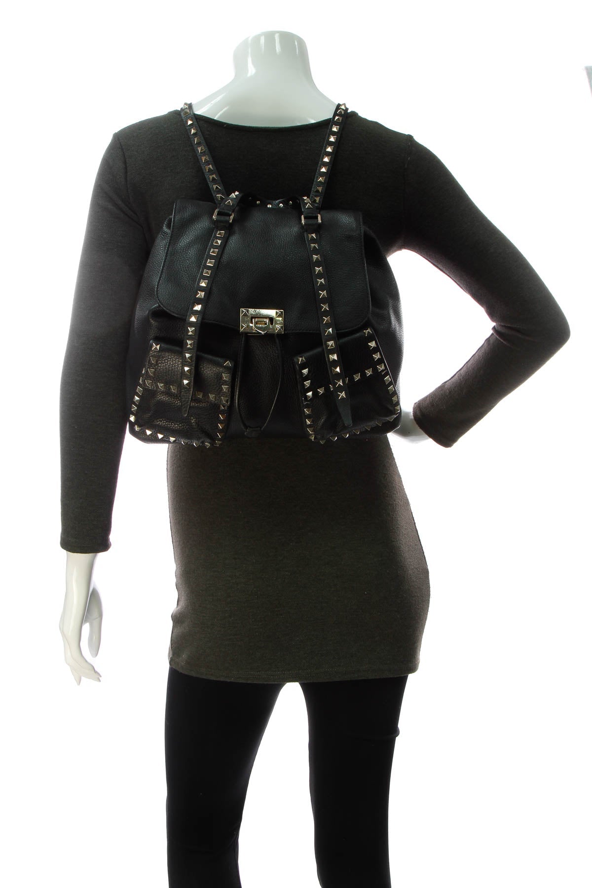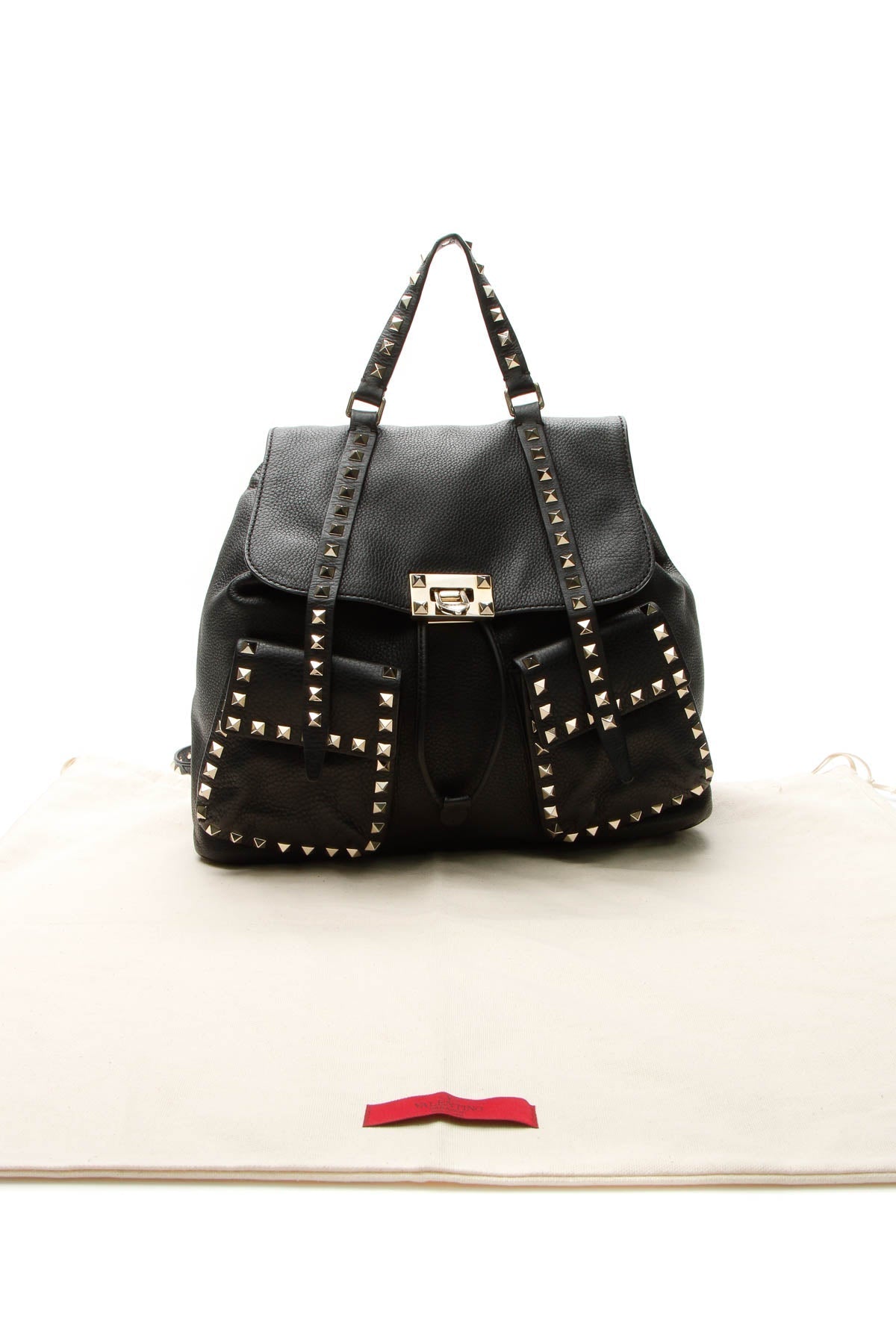 This authentic Valentino Rockstud backpack boasts the elegant edge for which the label is best known. Beautiful and soft to the touch black grained leather is enhanced by the iconic Rockstuds. The perfect accessory for festivals, work, errands, and sightseeing alike, prepare to turn heads with this statement-making piece.