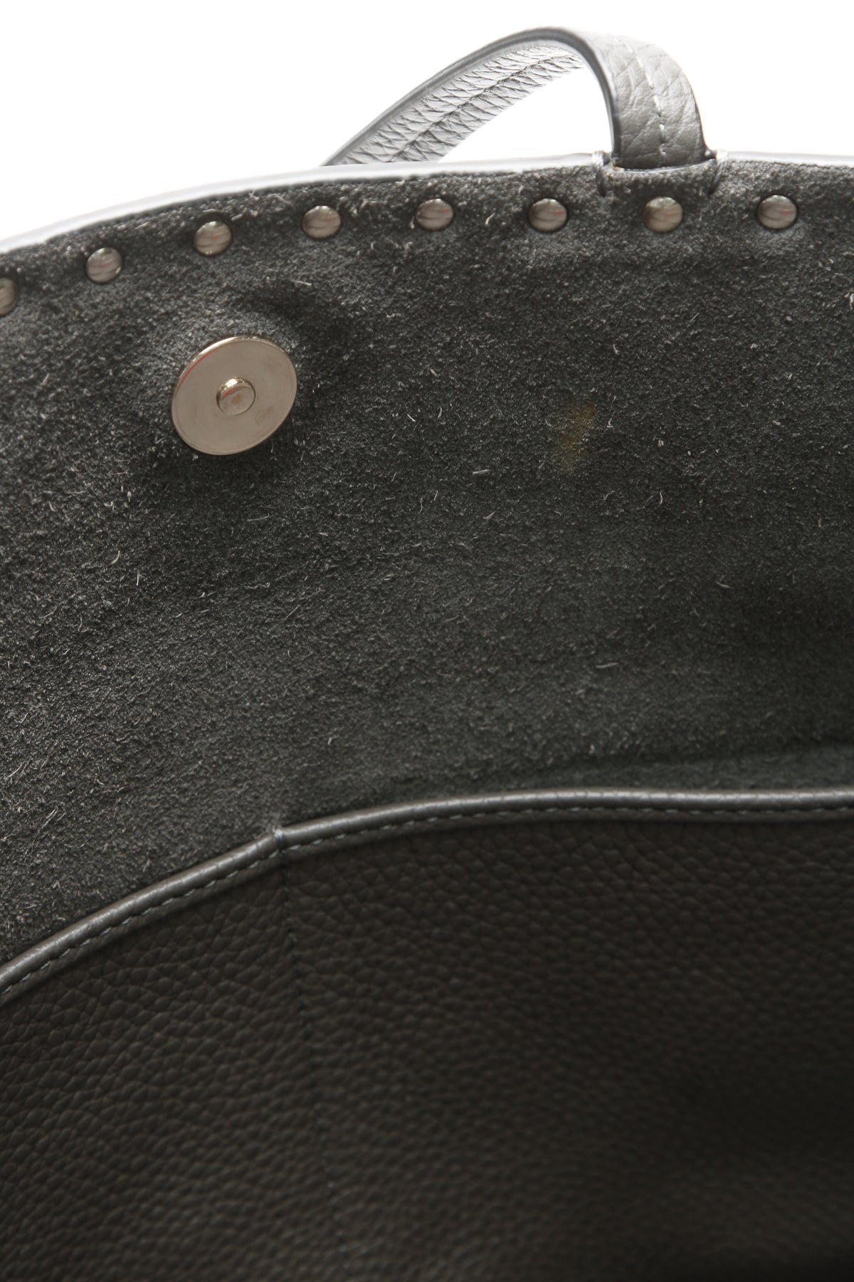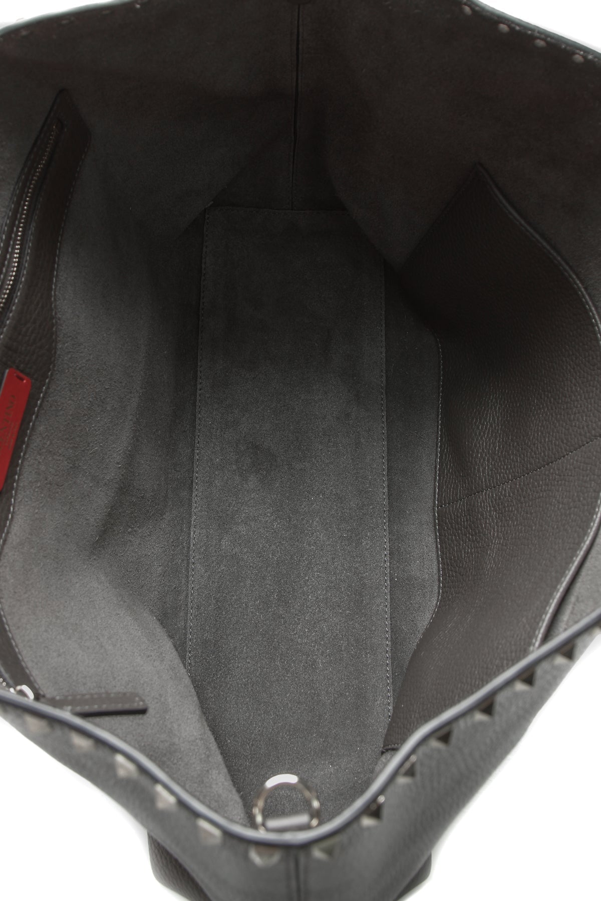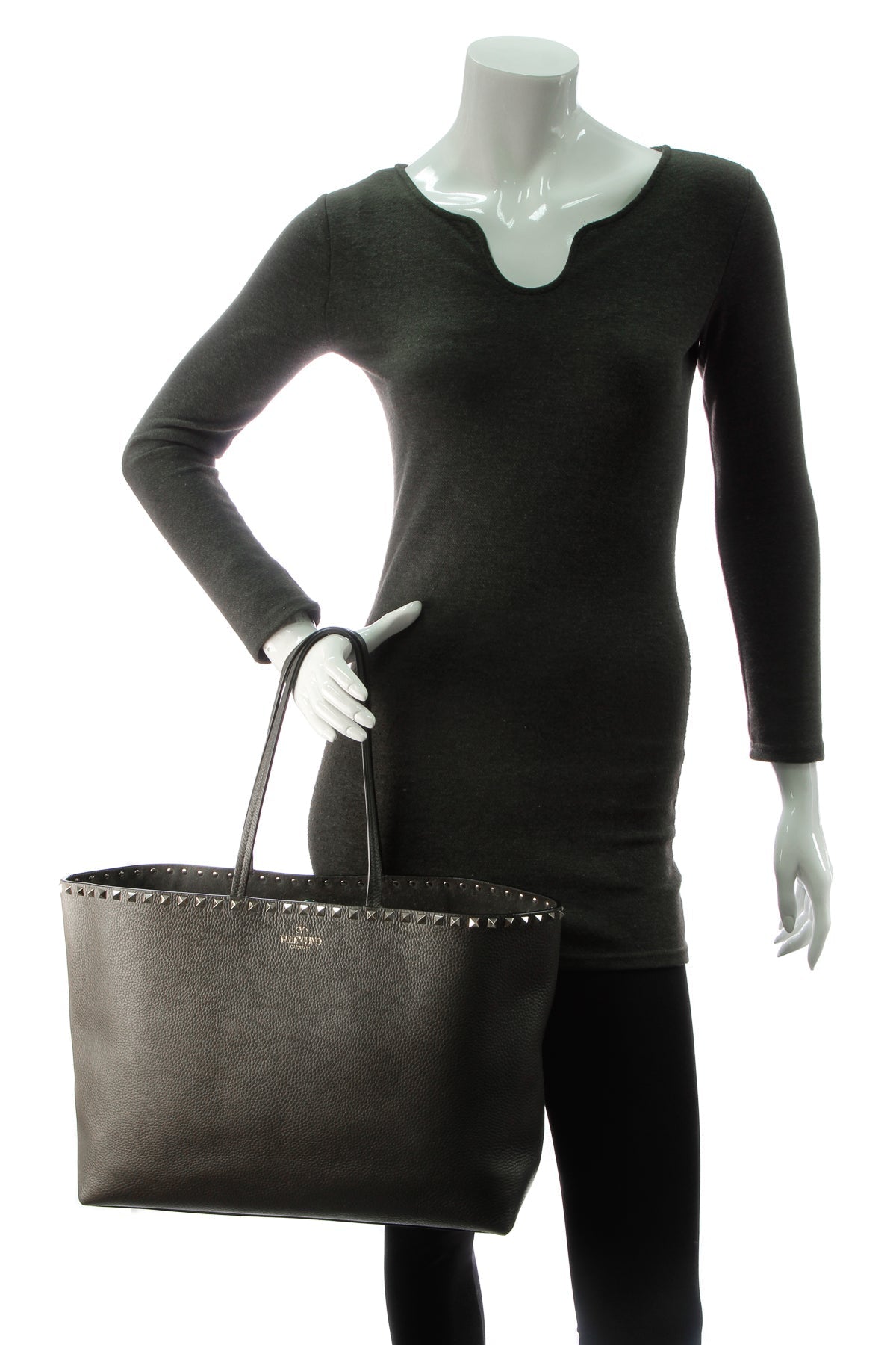 Elegant meets edgy in this authentic Valentino Rockstud tote. In this instantly-recognizable bag, gold-tone studs line a sumptuous gray leather silhouette lending that signature Valentino appeal to this pretty piece. A roomy interior provides the quintessential space for both personal and professional essentials alike.